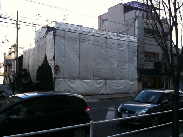 ついに始まりましたヾ(@⌒ー⌒@)ノ 2011.01.14 03:02 いよいよ解体工事が始まりました 足場とシートで囲まれて何も見えませんが 中は無残にも廃墟と化しています さぁこれからどんな変身を遂げるのか、随時更新していきますので楽しみにしてて下さいね\(^o^)/Yuhi