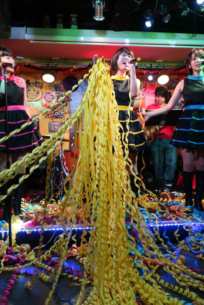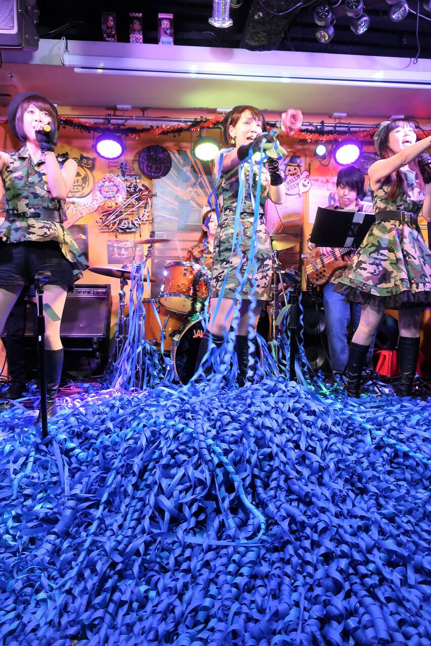 そんなハルカちゃんへの感謝の心を込めて青い紙テープを巻きました。この日のラストステージだけで他のファンの方が作った分を合わせると900発以上の青い紙テープが恵比寿JANKENPONに舞い飛びました。