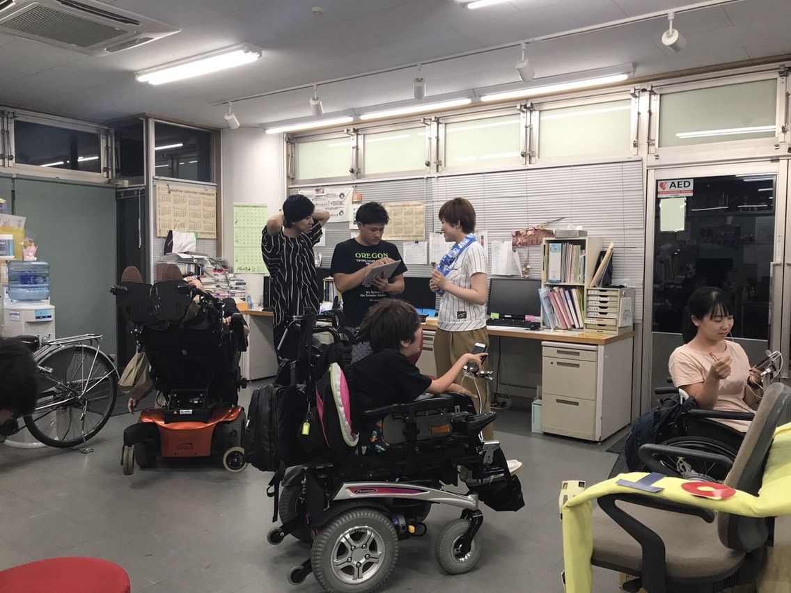 共にアメリカへ行く2人の介助者、橋口君と東さんも疲れが残る中状況を見守る。(途中夜の東京へ散歩)