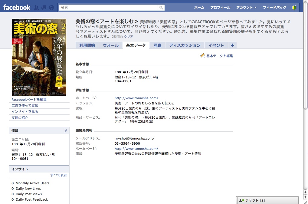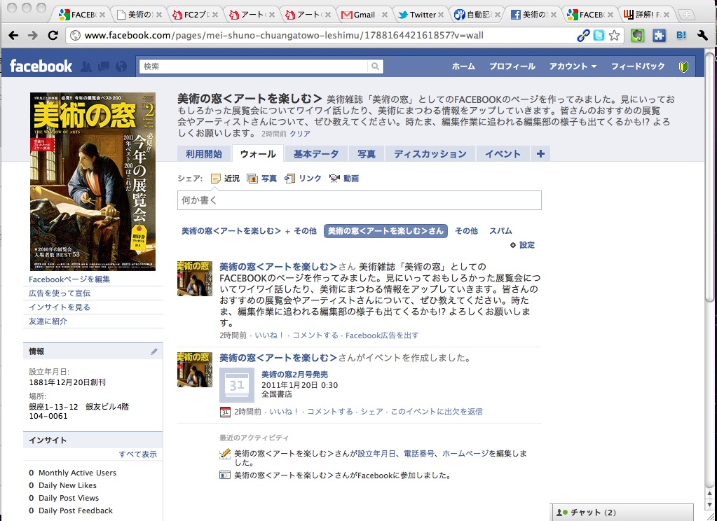 なんだかんだで、全くブログを更新せず、本当にお恥ずかしい限りです……スミマセン。 再び、ブログも書かねばと思い立ち。 さて、復帰第一弾は今年に入って、急激に人気急上昇中のFACEBOOK。熱心なススメもあって、 なんとかFACEBOOKファンページなるものを作ってみました。今日はじめたばかりなので、 こんな感じ。