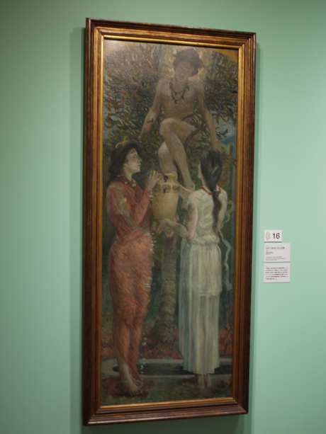 現在、東京・京橋のブリヂストン美術館で明治の浪漫主義を代表する青木繁の大規模な展覧会「特別展 没後100年 青木繁展ーよみがえる神話と芸術」が開催されている。青木の故郷・福岡県久留米市の石橋美術館、京都国立近代美術館をへて、最後の巡回先がここブリヂストン美術館となる。 [caption id="attachment_706" align="alignnone" width="460" caption="代表作と言われる「海の幸」"]