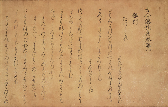 [caption id="attachment_1029" align="alignnone" width="560" caption="国宝 古今和歌集 巻八(高野切)[部分] 一巻 平安時代 毛利博物館蔵