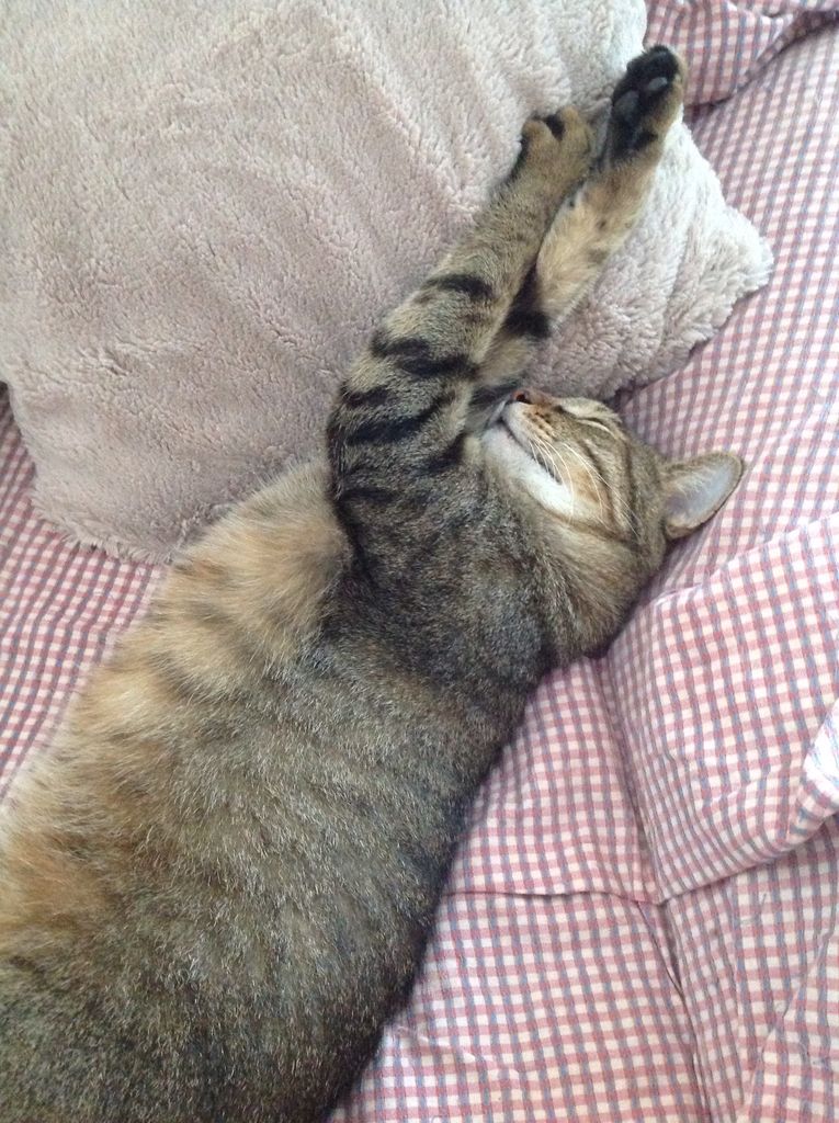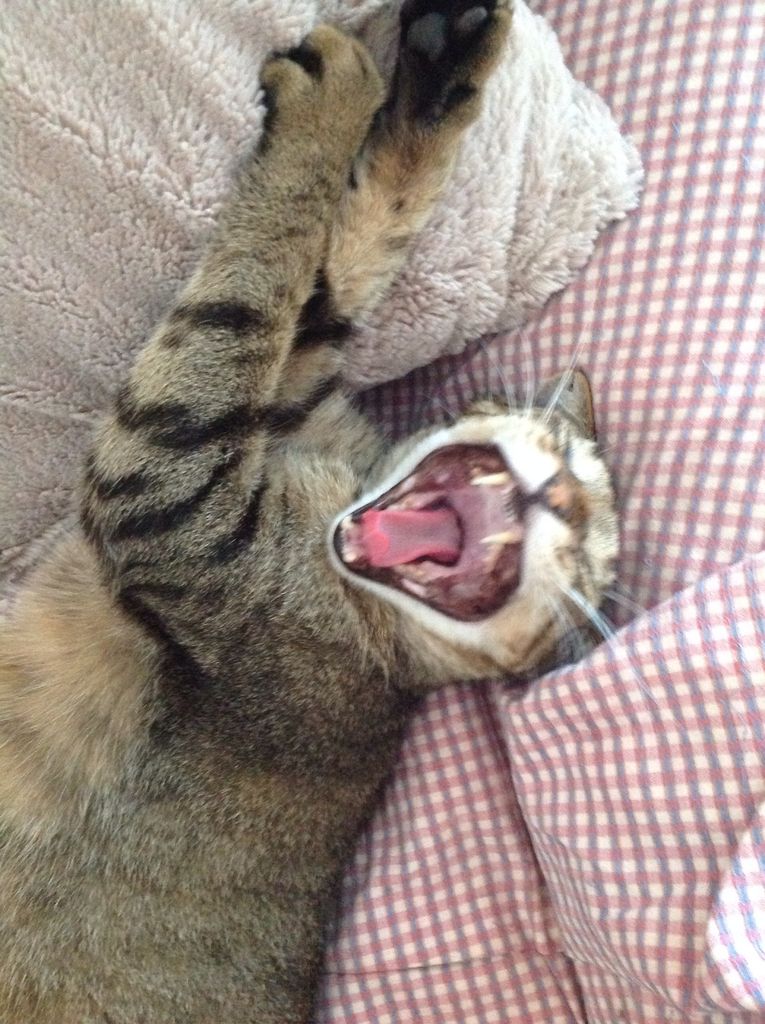 トラちゃん☆ 2014.08.15 08:31 お店の看板猫🐱トラちゃん☆爆睡中でした😅凄い寝方です•••笑 あ、起きたかな? 欠伸の瞬間が 撮れました!!! トラちゃんにも会いに是非ポチタマにもご来店下さい✌️お待ちしております(^^)♥️林