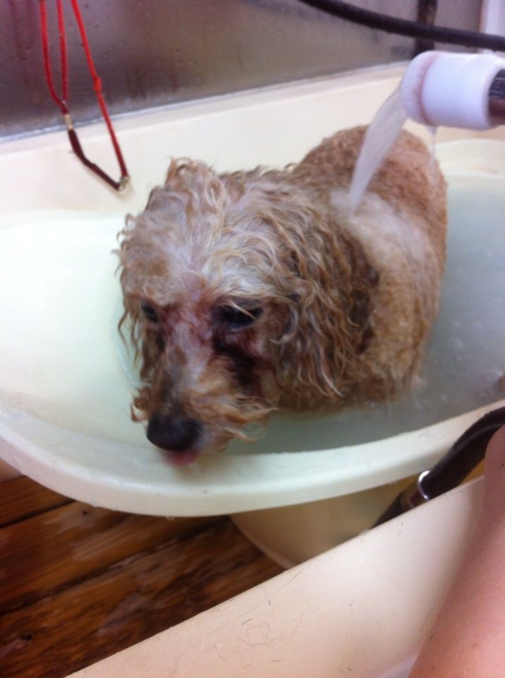 ムギちゃん☆ 2015.03.14 09:52 今日のお友達は… マイクロバブル入浴中😴ムギちゃんです😛 のんびり入ってました✌️ ムギちゃんは、アクアゼオパウダーを使った歯磨きもしました✌️少しずつですが歯石が付きにくくなってきて歯も白くなってきました✌️無麻酔で、歯の表面に傷をつけませんので安心してご利用して頂けます✨詳しくはスタッフまで💗 ムギちゃんお疲れ様でした☺️ ポチとタマをご利用して頂きありがとうございました(^O^)またお待ちしております💗 林