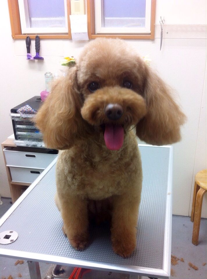 ラムちゃん☆ 2015.06.13 14:26 トイプードルのラムちゃんです😊 今回はお顔をピーナッツカットにしました💓口元が強調されてかわいいね😊💓 マイクロバブルにも入浴したラムちゃん✨気持ちよさそうに入っていました👍 お家でゆっくり休んでね😊 ポチとタマをご利用頂きありがとうございました!またお待ちしております🎵 萩原