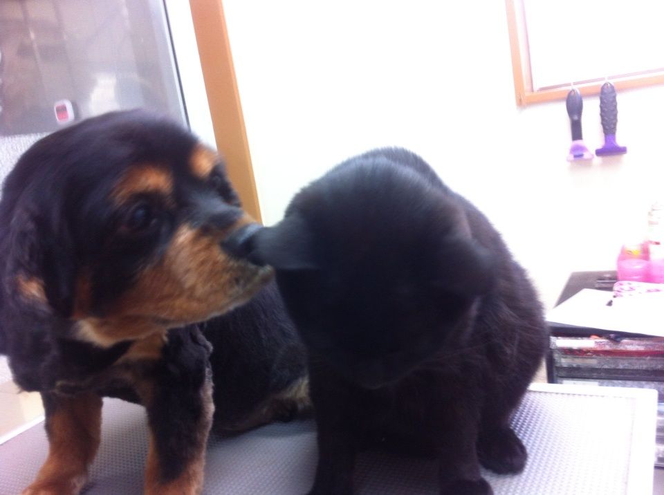 あずきちゃん☆ 2015.06.21 07:53 今日のお友達は… あずきちゃんです(*^^*) 全身バリカンで短ーくカット ✌️あーちゃんお疲れ様🌟 ポチタマの看板猫のクロさんが近づいて来ましたo(^_^)oあーちゃんはネコちゃんが好きなんだよね💖あーちゃんのオーナーさんもネコちゃんが大好きでもう一匹の看板猫のトラちゃんをいつも可愛がってくれます💗 トラちゃん共々またお待ちしております💗ご利用頂きありがとうございました(^O^)林