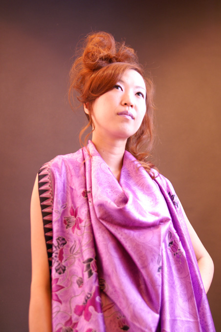 今回はモデルに巻きつけた布がインスピレーションの元でした。たまたま撮影の日にスタッフの誕生日で、みんなでこの布と灰皿などエスニックな小物をあげたのです。 この紫の布を見たときにとてもアジアンなモデルさんの全体像がイメージできました。セットで僧侶っぽい?雰囲気を現代風にアレンジしてみましたがいかがですか? なかなか自分でもイメージした感じが出せたので、美容雑誌の「しんびよう」編集部に今までの作品も添えて見ていただきました。 このモデルさんはシータのお客様ですが、いい雰囲気してるでしょ。しんびよう編集部の方には今後の作品撮りにおけるアドバイスをしっかりいただき、今後のいい指針になりました。 これからもなるべく間を空けずに作品撮りを続け、ものづくりにとってとても大切な感性の部分を広げていこうと思っています。