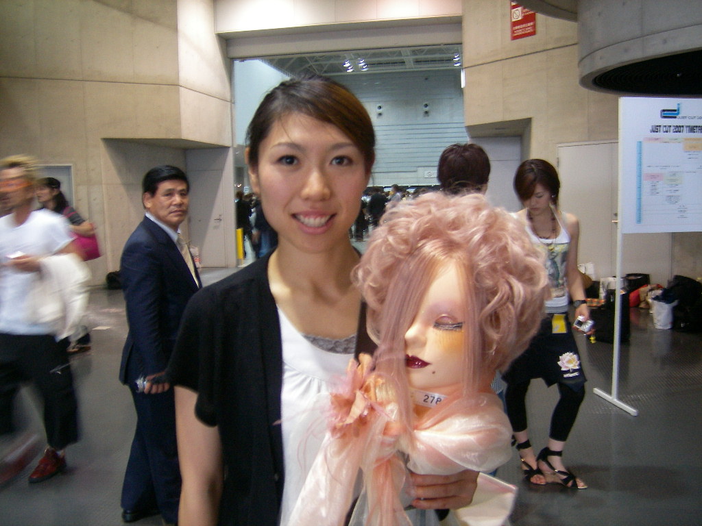 本日、毎年恒例JUST CUTコンテストに参加してきました。 連日、12時過ぎまで練習に告ぐ練習・・・仕込み・・・ 朝から眠いやら緊張するやら・・・不思議なテンションの中、横浜みなとみらいにあるコンテスト会場まで行ってきました。 今回は、カットウィックを使ったカットコンテストです。カラー、パーマを施したお人形さんを40分でカットと仕上げをしていくものです。