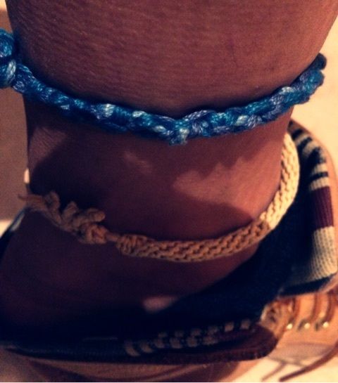 ミサンガを作ってみた 2015.01.28 06:41 ミサンガの紐セット買ってやってみた。 だんだん要領がわかってきて作れました。 足にプラス。黄色いのは買ったやつです。そろそろ切れそうだな。また作ろっ♡