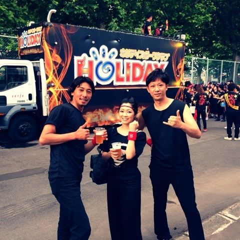 わっしょい函館 2015.08.04 02:40 はい出てきましたわっしょい函館まずはホリデーダンス 踊りまくった達成感!!汗だくで疲れたけど楽しかった!!知り合いだらけではないけど、皆さんの一体感は半端ないです。見習わないとね。無事にゴールについてダッシュで戻りこれに変身 汗で視界が曇るし汗が滴るし顔だけサウナ。沢山のお子ちゃまと握手や写真撮影チョットパニック状態に。楽しかったのですか、中には柄の悪い絡みもありました。残念ですね そういう人いるとガッカリ😞来年も8は、気合い入れて頑張ります!! お友達の仮装。あーあ