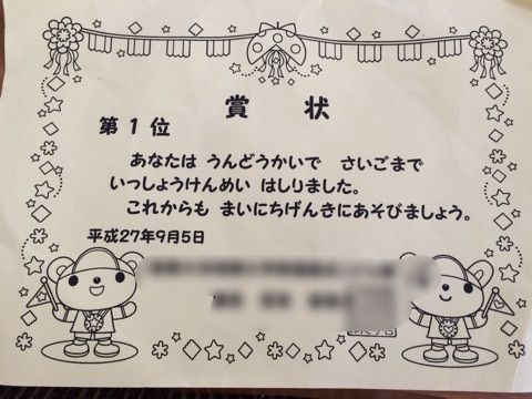 運動会 2015.09.05 23:00 昨日は、運動会晴天に恵まれ暑いぐらい朝六時半に息子さんを叩き起こしランニング&ダッシュの練習 本人は寒いからってイヤイヤでも成果はでましたよ。 去年は3位 日頃走ってる成果がでたようです。普段、あまり怒らない僕ですが走る練習になるとスパルタです。次は大沼マラソンに向けてスパルタです。僕も怒られるか怒られないかのギリギリラインでやってきました、恒例のこれで。 子供達は、とても喜んでくれてたのでお叱りはないようです。来年もなんかやろーっと。
