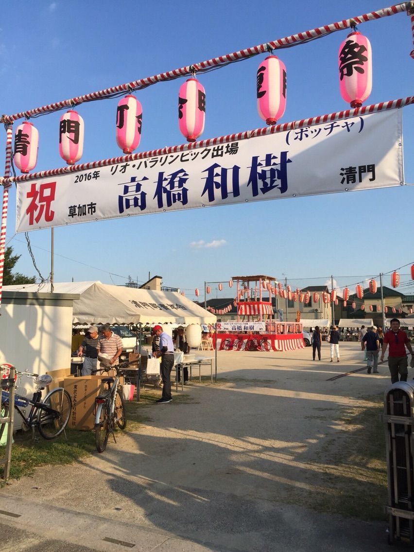 地元からの応援☆ 2016.08.09 14:24 2016年8月7日高橋和樹の出身地である草加市清門町!大学を卒業する23歳までずっと住んでいました。 今その清門町が面白いことになっています(笑) 清門町内の24カ所に「パラリンピック出場の立て看板」