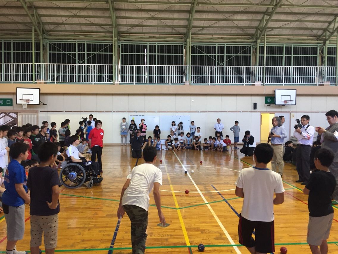 母校でのボッチャ体験! 2016.10.20 15:55 2016年10月20日今日は母校の小学校へ行ってきました☆全校朝会で全校生徒へ向けたお話しと6年生を対象にしたミニ講演&ボッチャ体験!クラブチームの長尾選手と一緒に行い、クラブチームの仲間にも協力していただきました。