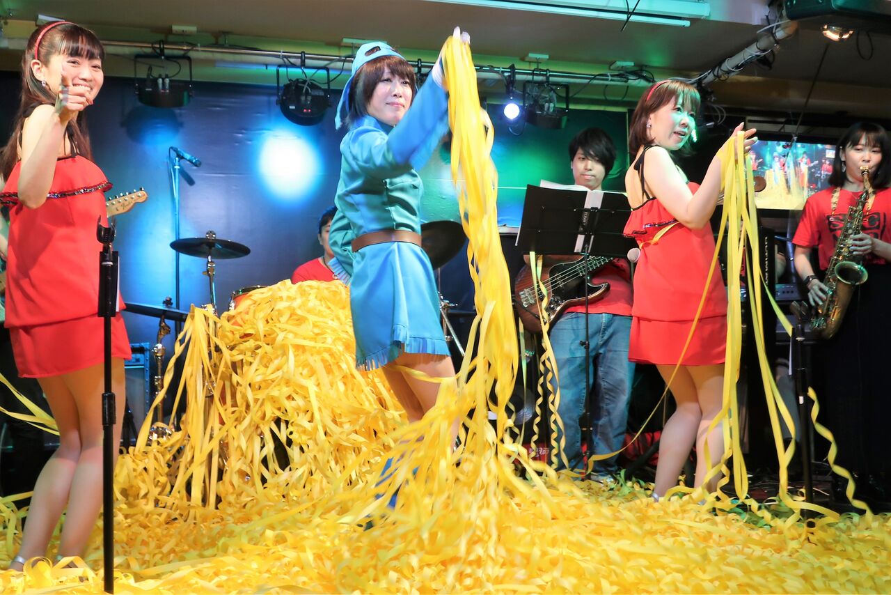 ステージ開始直後から黄色い紙テープがバンバン飛びました。