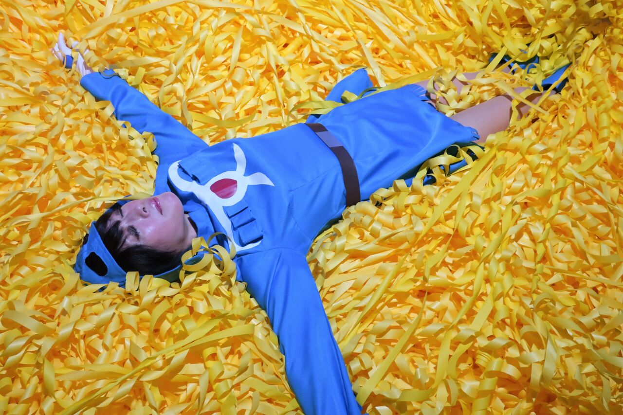 ステージ後はお約束、「金色の野」に横たわるナウシカ(のコスプレをした変死体ではない)。