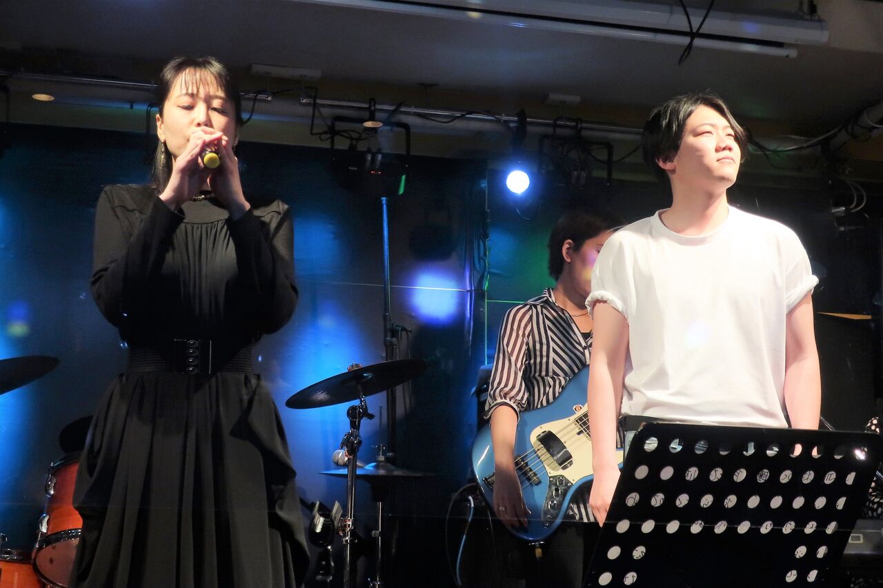 演奏は、ベース・チャッキーさん、キーボード(ピアノ)・マスミンさんという、歌謡曲を弾かせれば最強とも言える二人。二人だけなのにフルバンドで聴いてるくらい濃厚な演奏をしてくれます。この日も素晴らしいコンビネーションプレイを聴かせてくれました。