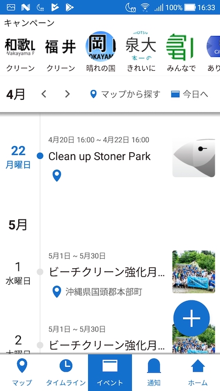 また、マップからもイベントを探すことができます。もしかすると、ご近所で清掃イベントがあるかもしれませんのでぜひ探して見てください!