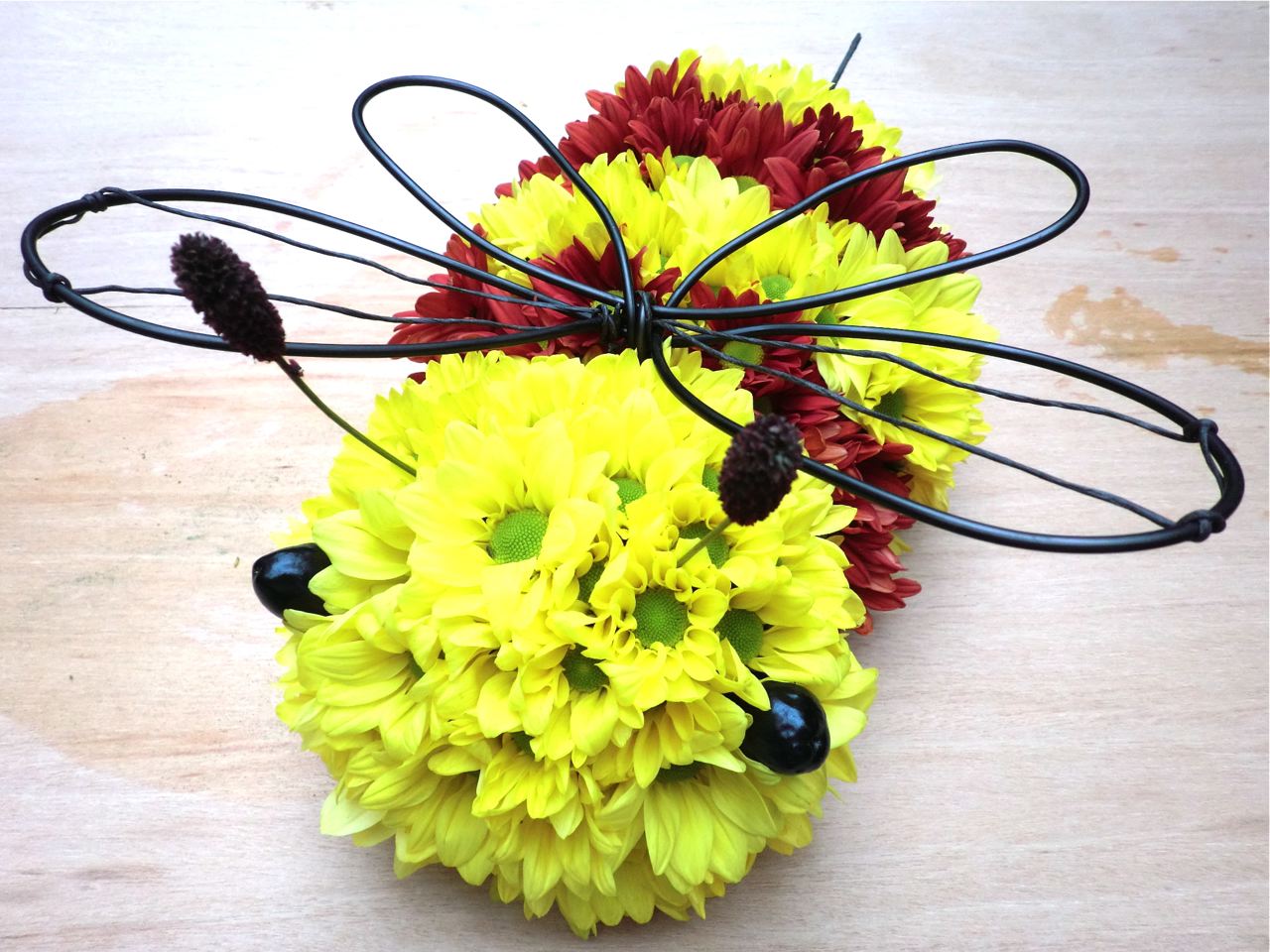 サイン会に飾るアレンジメント 2014.10.04 18:45 「樋口美沙緒先生&街子マドカ先生サイン会」のためのアレンジメントです。蜂の形のアレンジメントのオーダーです。紀伊国屋書店新宿本店8階イベントスペース にて。