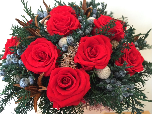 プリザーブド・フラワーで作りました。