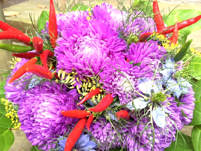 」さん受付花です。アスターをメインに。