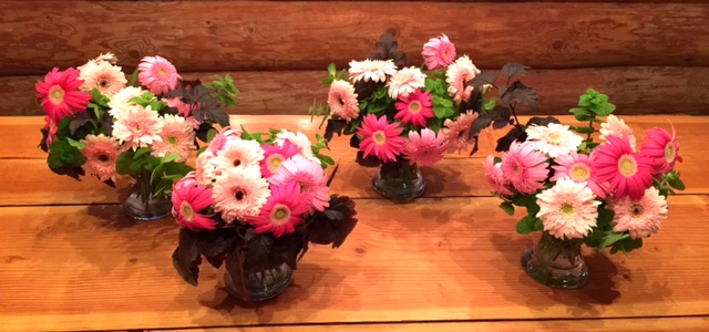 フラワーレッスン。生徒さんの作品です。 2015.10.31 01:24 今回はガーベラのレッスン。花瓶生けのガーベラはうまく留まらず難しいもの。そんなときはたくさんのグリーンで固定させます。花材 ガーベラ(札幌花市場より)ディアボロ、ミント(美流渡産)