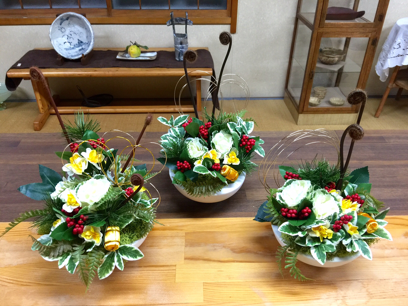 お正月用アレンジメント。アーティフィシャル・フラワーで作りました。