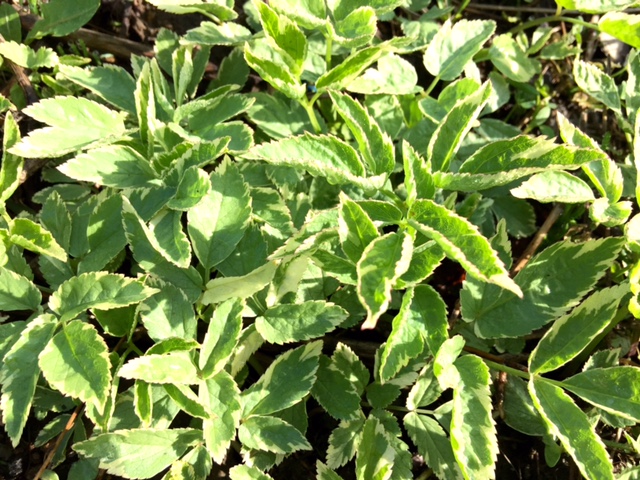 「ホワイトレースフラワー(斑入り) 」 この花も見かけによらずとても丈夫。斑入りは花の咲く前から楽しめるのでたくさん増やしたい。