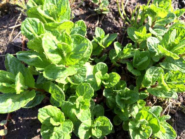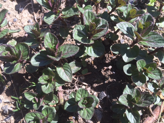 「スペアミント」 ミントもこの季節はまだこんなに小さいです。後で凄いことになるのですが…。花束のグリーンに使いたい。
