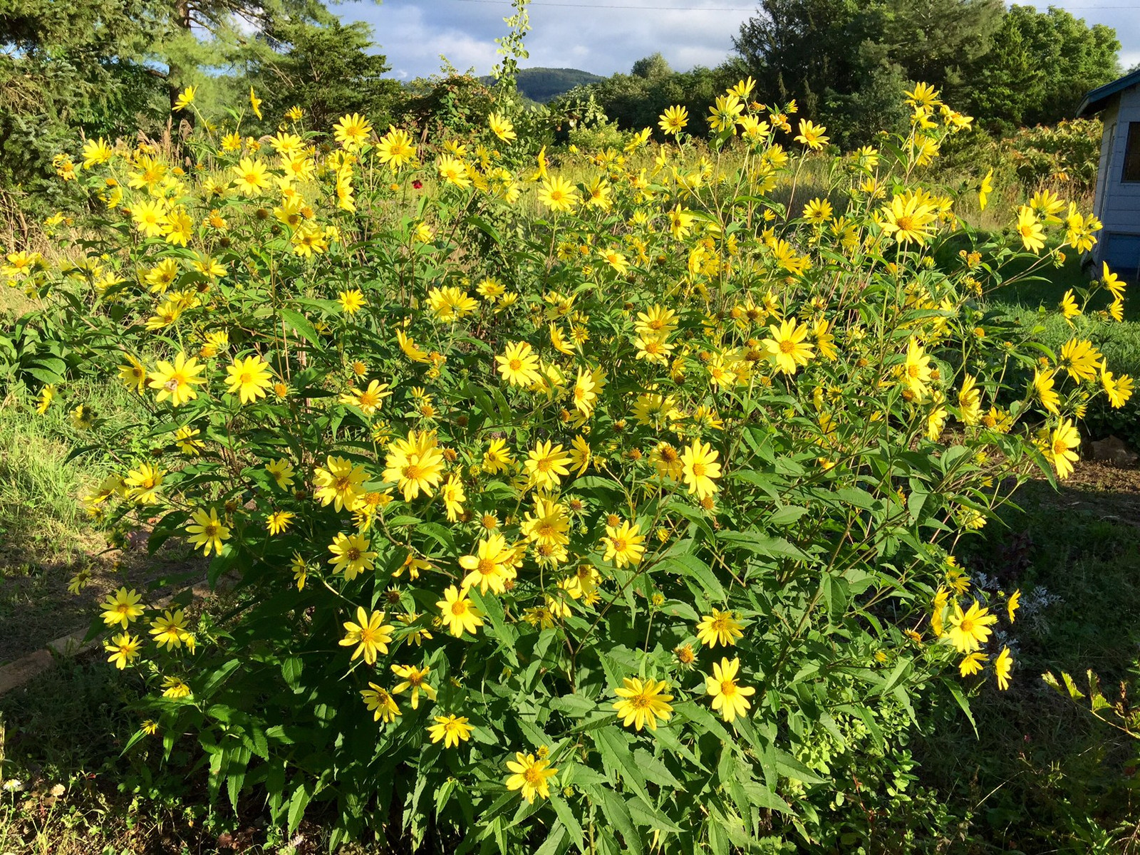 キクイモモドキ満開!今では背丈ほどに育ちました。