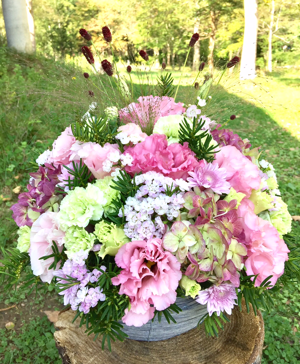 ガーデンからのお花は秋色アジサイ、ワレモコウ、イチイ。アジサイはどんどん増やしたい。(m)