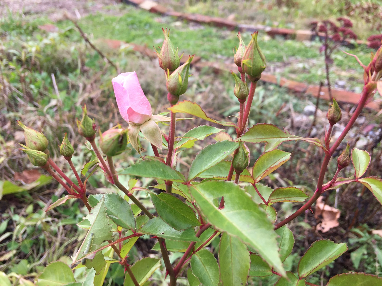 バラは寒さにも強いですね。今年のガーデンで最後に花を咲かせるのはこのバラかな。(m)