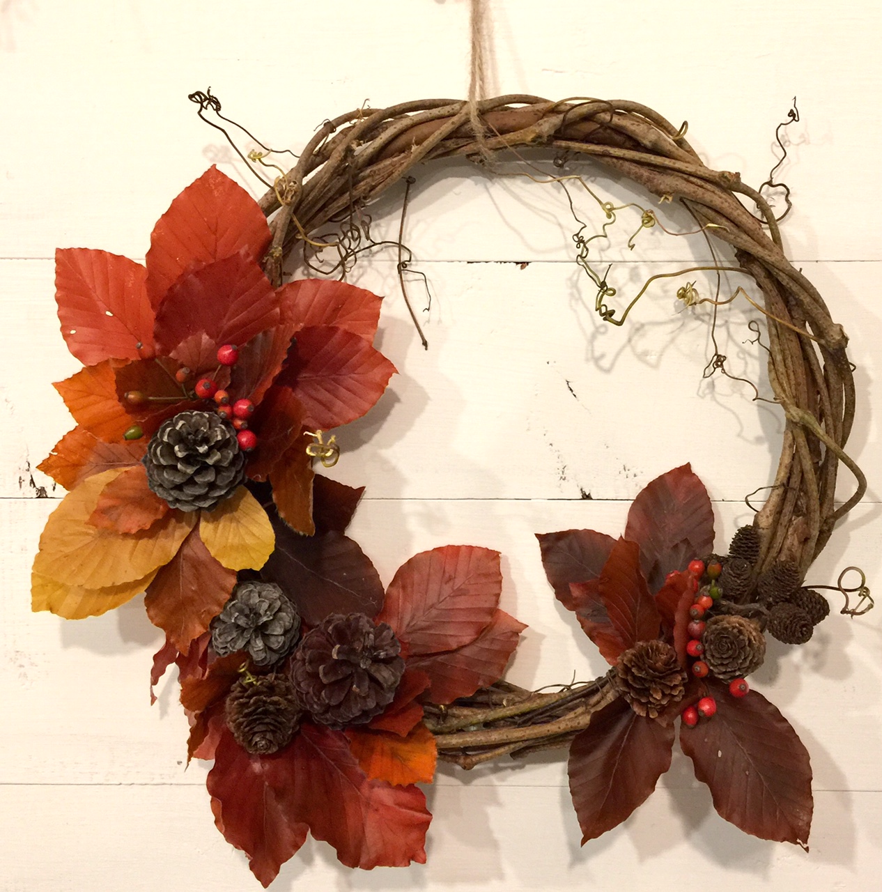 美流渡では野ばらの実が旬になってきました。晩秋のリースです。(y)