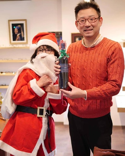 誰かと思ったらお客様( ゚∀゚)アハハ八八ノヽノヽノヽノ \ / \/ \ 「メリークリスマス!」と、ワインを頂戴致しました(^^♪