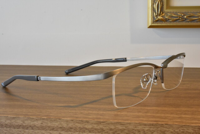 フロントのブロウ部分は目尻にかけ厚みをつけ自然とテンプルのラインに繋がりを持たせるだけではなくお顔に表情を与える効果もあります。