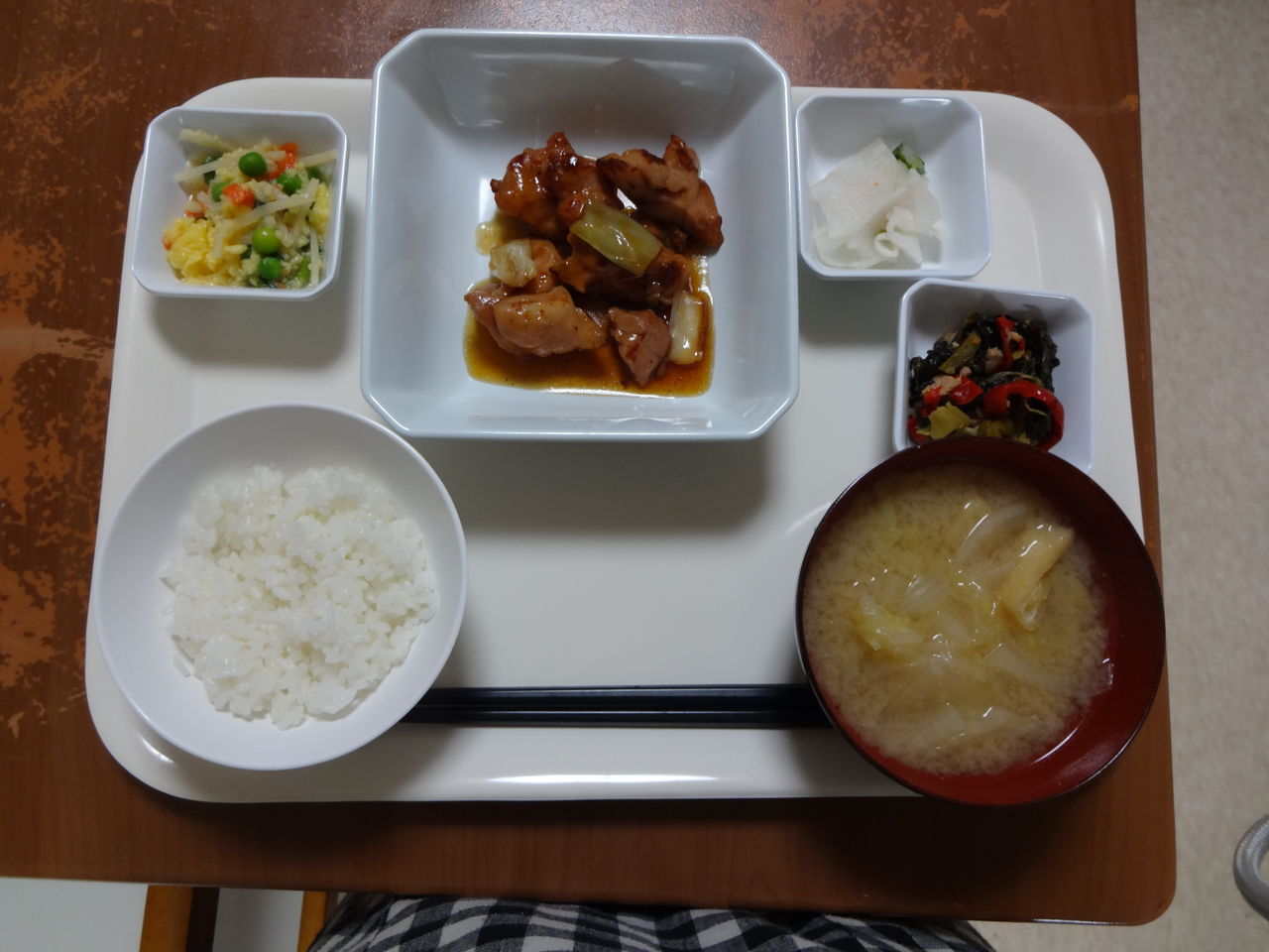 本日のメニュー 2013.12.18 04:33 本日のメニューです(12月18日)〈昼食〉 主食 ご飯 味噌汁主菜 ネギ入り焼きとり副菜 エンドウ豆のたまご和え添物 チンゲンサイとハムの炒め 大根風味漬け〈夕食〉 主食 混ぜご飯 味噌汁主菜 さわらのドライハーブ焼き副菜 野菜真丈添物 京揚げひじき 味漬けきぬさや