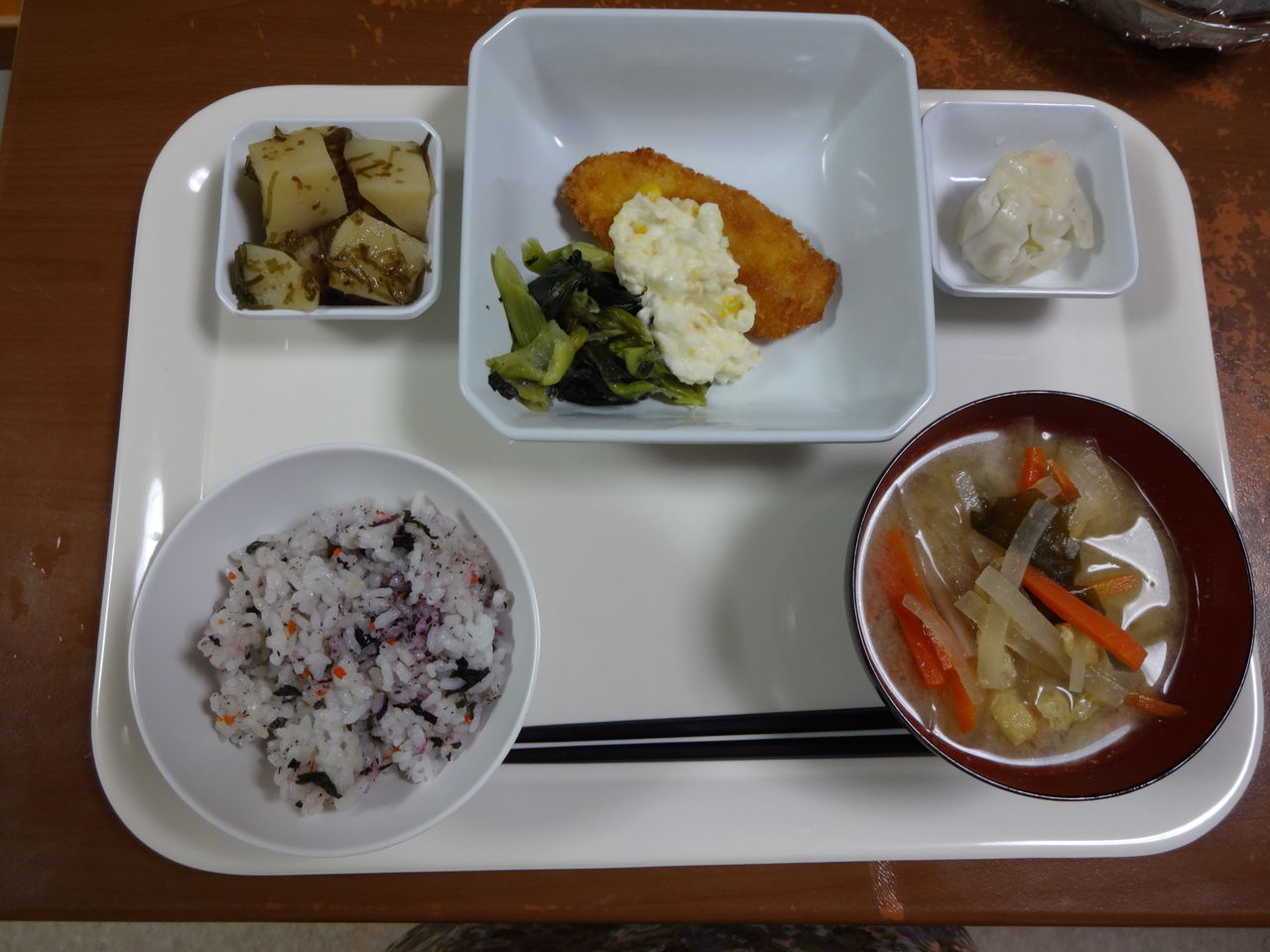 本日のメニュー 2013.12.27 04:36 本日のメニューです(12月27日)〈昼食〉 主食 ご飯 肉団子と野菜のスープ主菜 ロールキャベツのクリーム煮副菜 鶏ミンチと里芋の煮物添物 五色煮豆〈夕食〉 主食 混ぜご飯 味噌汁主菜 サーモンフライ副菜 ジャガイモと昆布の京煮添物 しゅうまい チンゲンサイソテー