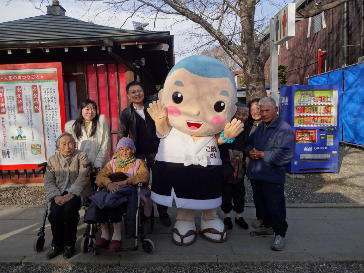 初詣 2014.01.04 07:26 あけましておめでとうございます今年もはっぴーらっきーをよろしくお願い致します今日は新年最初のご利用日という事で、千葉厄除け不動尊に行きました皆さんそれぞれ祈願をした後、マスコットキャラの‘こぼんさん’と記念撮影をしました