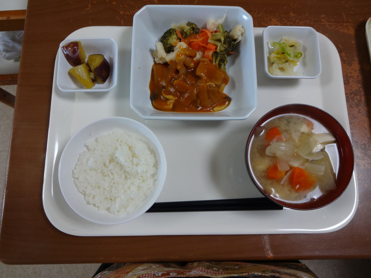 本日のメニュー 2014.01.06 04:23 本日のメニューです(1月6日)〈昼食〉 主食 ご飯 味噌汁主菜 ポークストロガノフ副菜 温野菜サラダ添物 さつま芋甘露煮 白菜風味漬け〈夕食〉 主食 混ぜご飯 タマゴスープ主菜 ポテトコロッケ副菜 お肉風大豆たんぱくの五目炒め添物 インゲンのショウガ醤油和え ブロッコリーのおひたし りんご