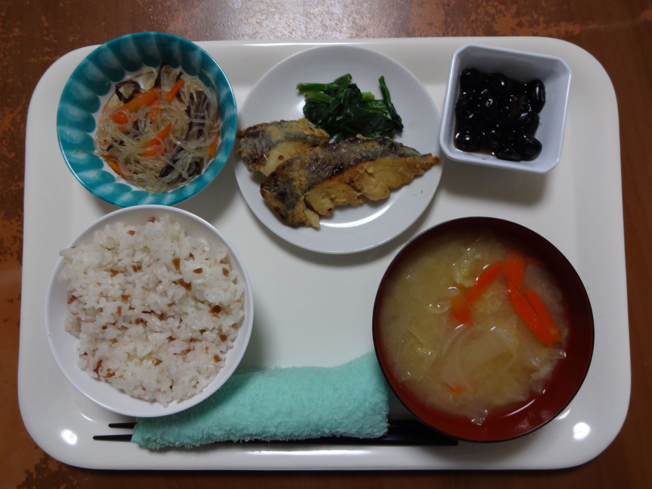 本日のメニュー 2014.01.20 11:27 本日のメニューです(1月20日) 〈昼食〉 主食 ご飯 肉団子スープ 主菜 海老のチリソース 副菜 ごぼうと人参の胡麻マヨ 添物 刻み壬生菜漬 〈夕食〉 主食 梅ご飯 味噌汁 主菜 白身魚の味噌焼き 副菜 中華春雨 添物 黒豆