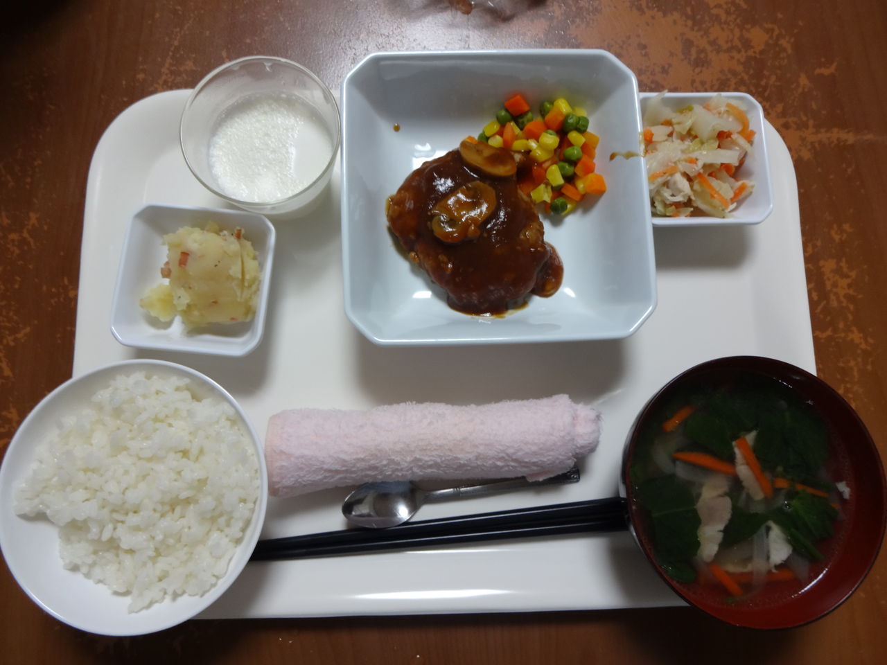 本日のメニュー 2014.01.24 08:22 本日のメニューです(1月24日) 〈昼食〉 主食 ご飯 味噌汁 主菜 かぼちゃコロッケ 副菜 ずいきと油揚げの煮物 添物 温野菜サラダ 〈夕食〉 主食 ご飯 野菜スープ 主菜 デミグラスハンバーグ 副菜 ジャーマンポテト 添物 キャベツと鶏のサラダ