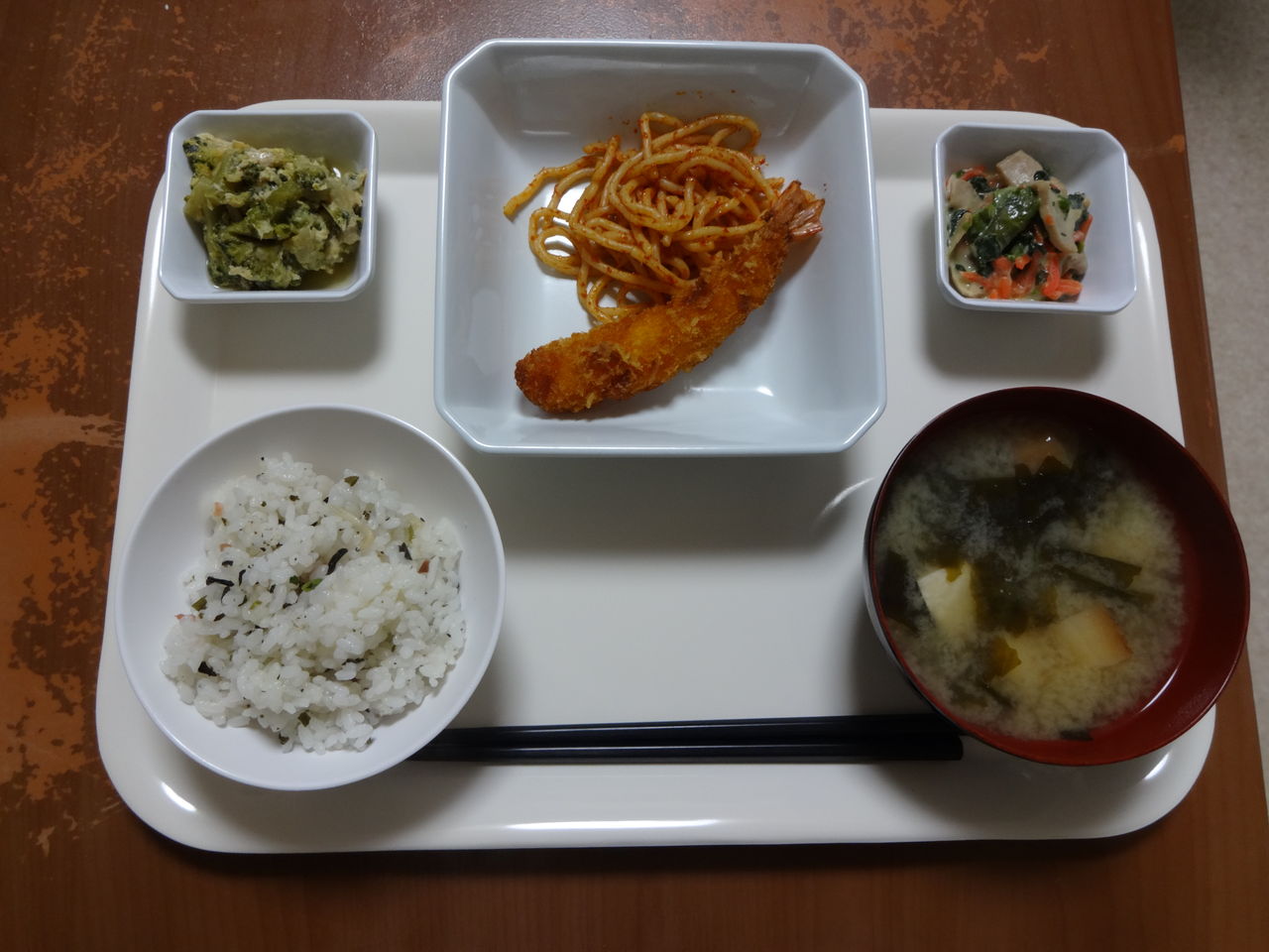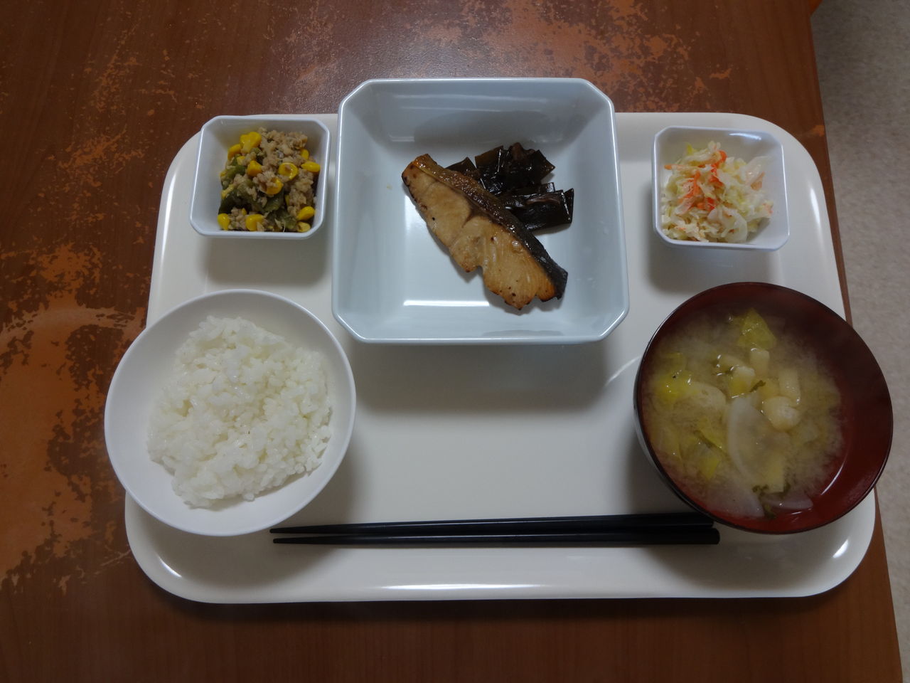 本日のメニュー 2014.01.29 04:46 本日のメニューです(1月29日)〈昼食〉 主食 ご飯 味噌汁主菜 鮭の照り焼き副菜 コーンとひき肉の炒め物添物 キャベツの白ドレ和え シイタケ昆布〈夕食〉 主食 混ぜご飯 味噌汁主菜 えびフライ副菜 ブロッコリーの卵とじ添物 菜の花ときのこの酢味噌和え スパトマト炒め
