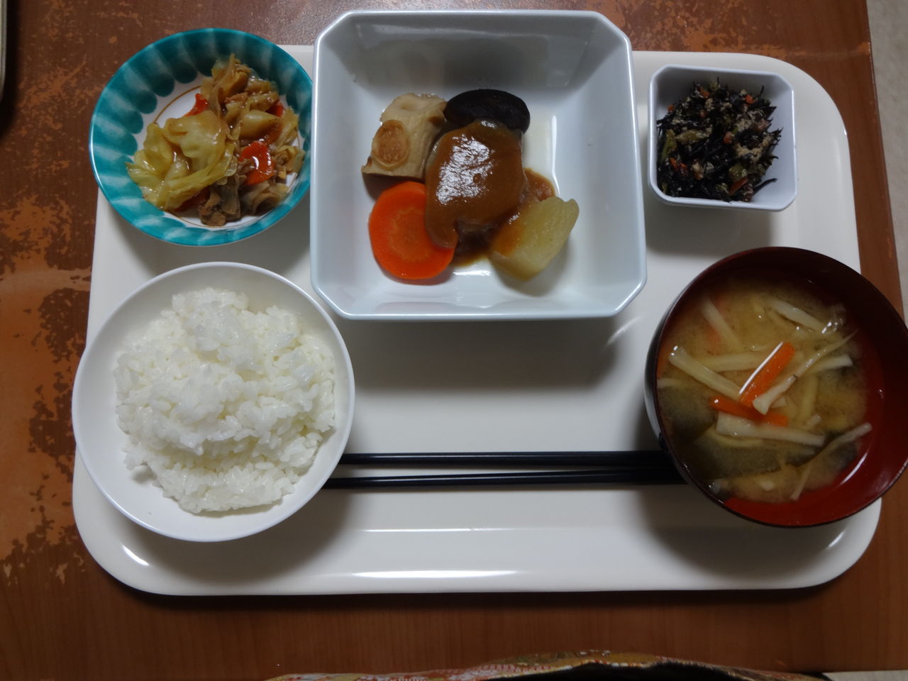 本日のメニュー 2014.02.05 11:09 本日のメニューです(2月5日)〈昼食〉 主食 ご飯 味噌汁主菜 メンチカツ副菜 鶏肉と小松菜煮添物 ソーセージのマッシュサラダ スパトマト炒め〈夕食〉 主食 ご飯 味噌汁主菜 田楽煮副菜 ホイコーロー添物 菜の花とひじきの胡麻和え