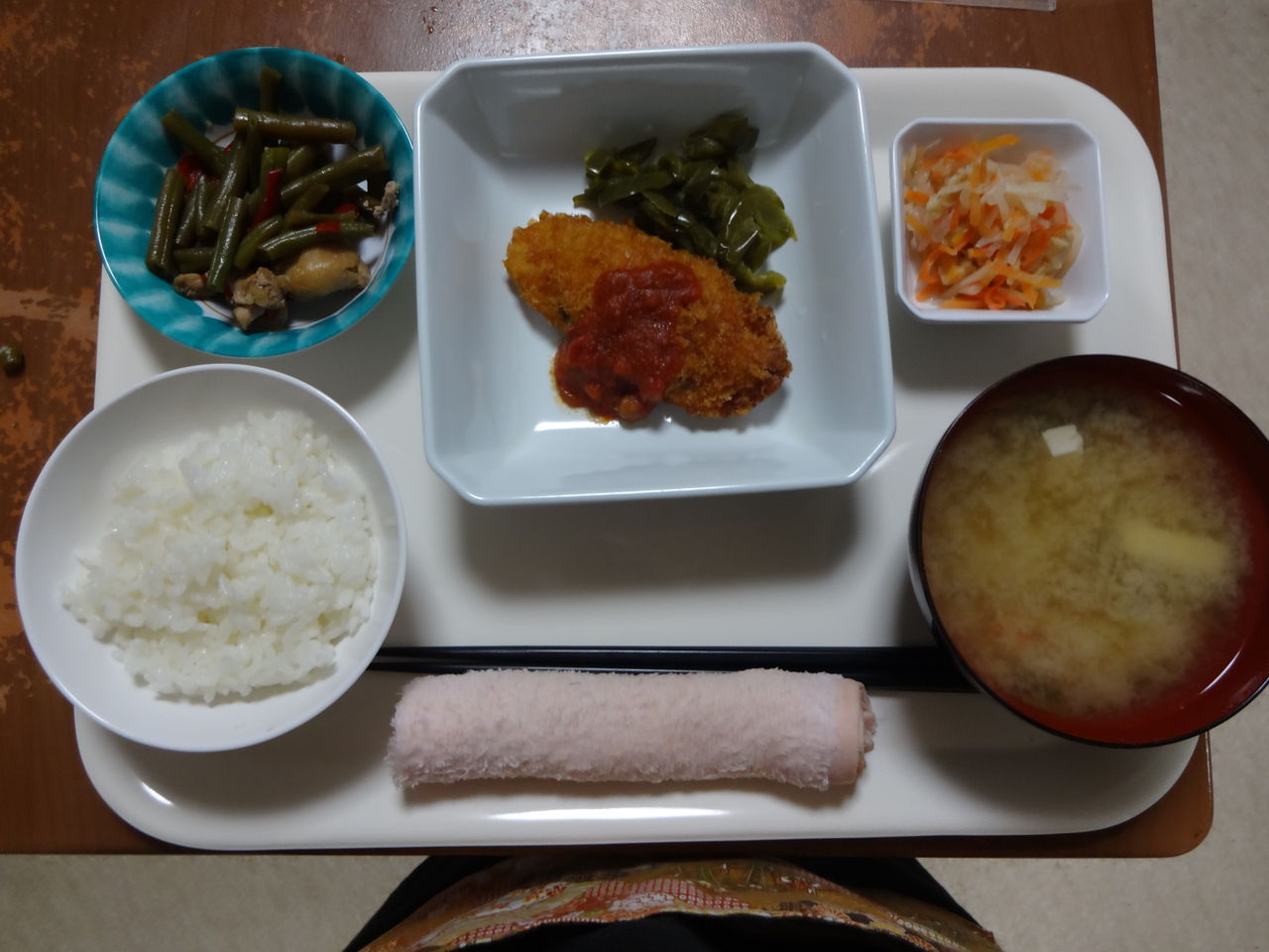 本日のメニュー 2014.03.19 04:08 本日のメニューです(3月19日)〈昼食〉 主食 ご飯 味噌汁主采 あじの酒粕焼副菜 若竹煮添物 コーンとひき肉の炒め〈夕食〉 主食 ご飯 味噌汁主菜 サーモンフライ副菜 いんげんの生姜炒め添物 煮なます ピーマンソテー