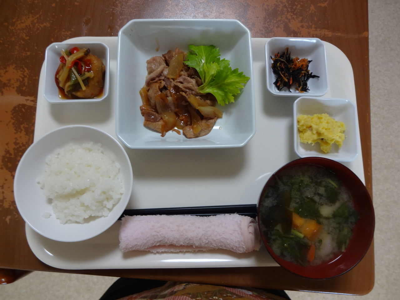 本日のメニュー 2014.03.24 04:12 本日のメニューです(3月24日)〈昼食〉 主食 ご飯 味噌汁主菜 豚肉のてりやき副菜 絹ごし揚げのオイスターあん添物 おさつサラダ ちりめんひじき山しょう〈夕食〉 主食 ご飯 野菜スープ主菜 イワシのオレンジ煮副菜 入り豆腐添物 菜の花の黒胡麻和え カリフラワーの土佐和え 蕗味噌