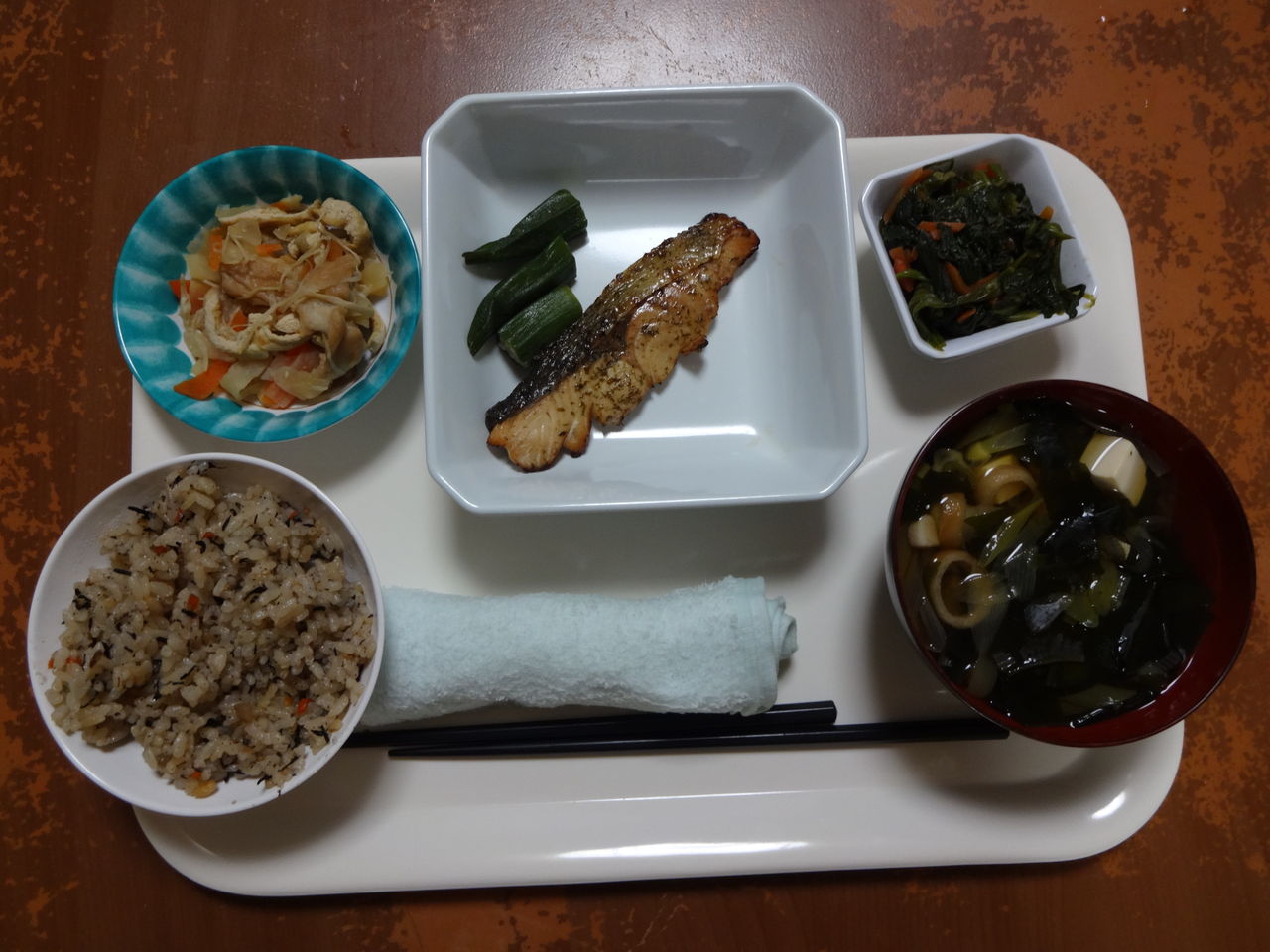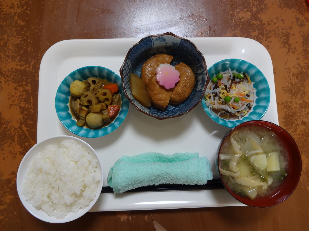 本日のメニュー 2014.03.26 10:28 本日のメニューです(3月26日) 〈昼食〉 主食 ご飯 味噌汁 主菜 冬瓜と丸揚の煮物 副菜 れんこんと鶏肉のカレー煮 添物 五目春雨の酢の物 〈夕食〉 主食 梅ひじきちりめんご飯 すまし汁 主菜 鮭の磯辺焼き 副菜 麩とえのきのさっと煮 添物 ほうれん草のお浸し