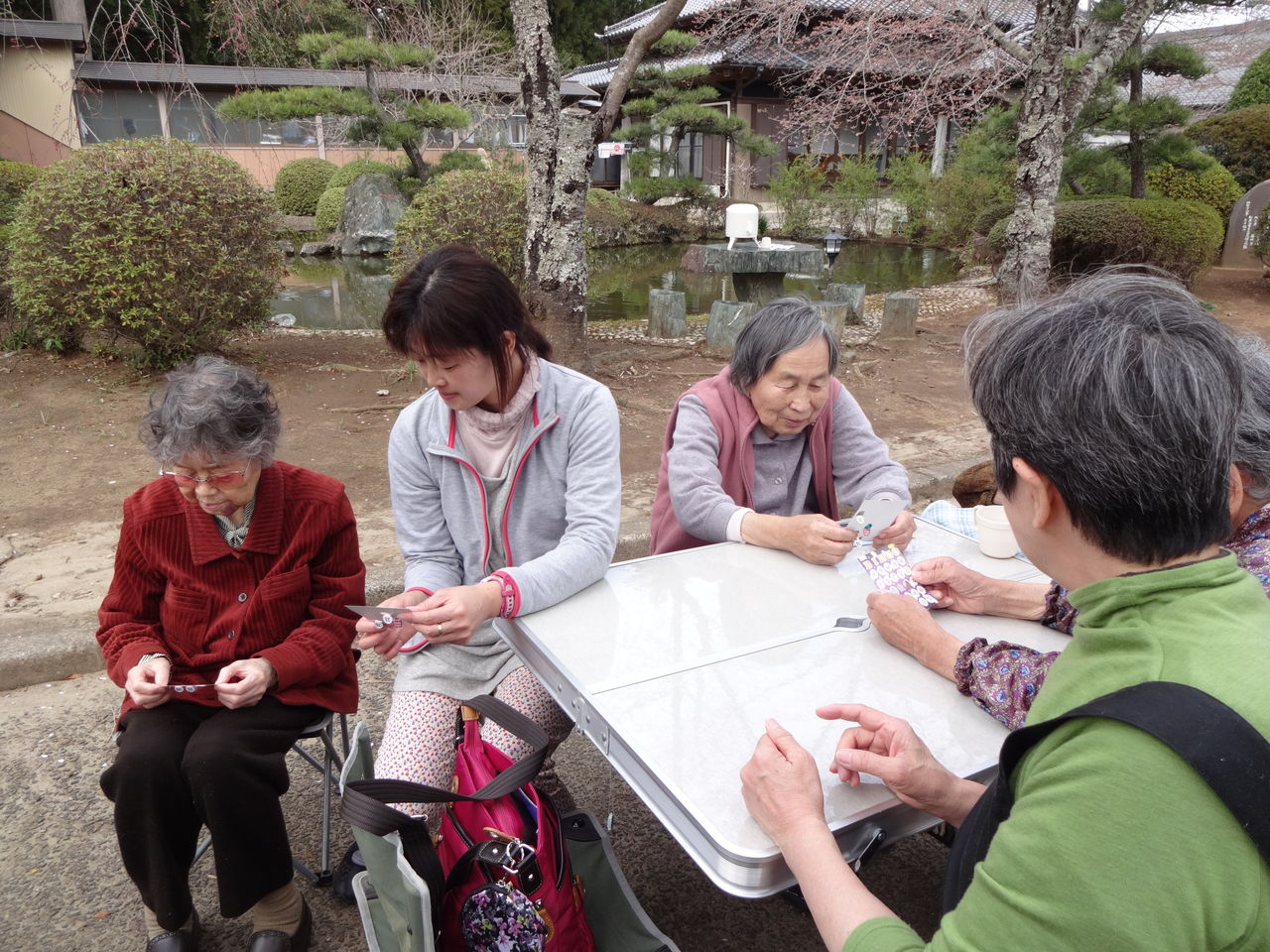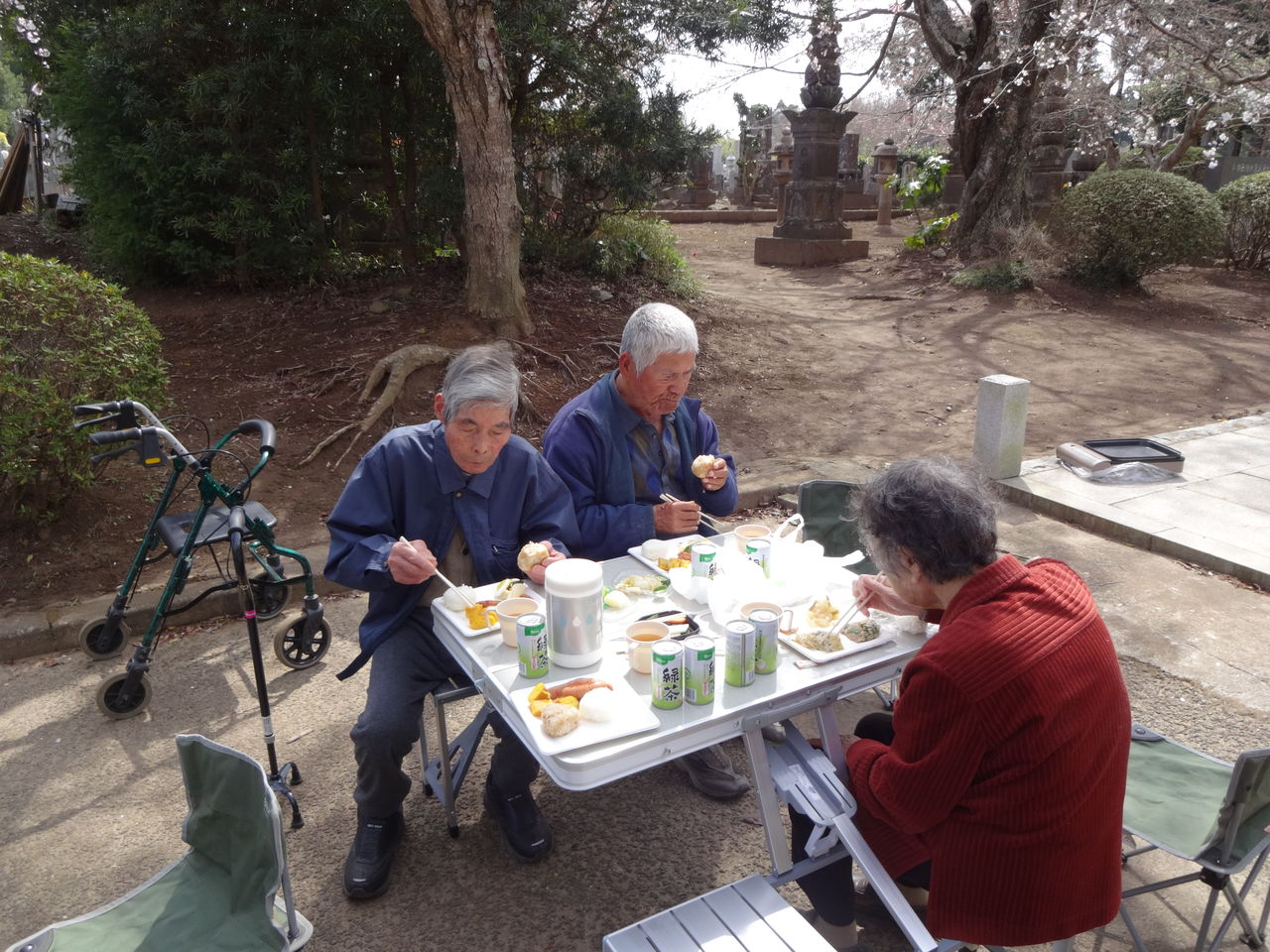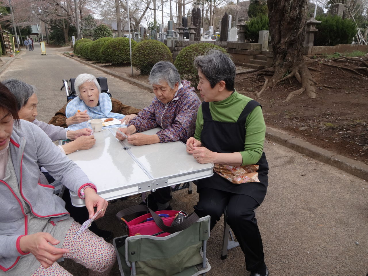 花より・・・? 2014.03.29 12:31 今日はお天気が良く、非常に暖かかったので、急遽「お花見」に出掛けましたたまには気分を変えてと、屋外で昼食です 昼食後は、桜の木の下で“ビンゴ大会”です 最後は場所を移動して、願成就寺の枝垂桜の下で‘パチリ’ 来週はどこへ行こうかなぁ~