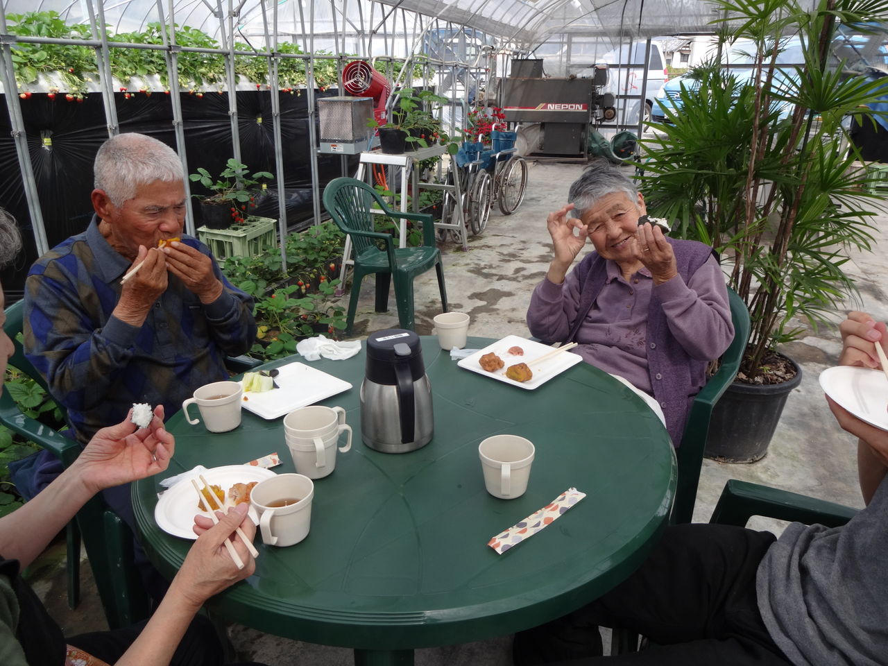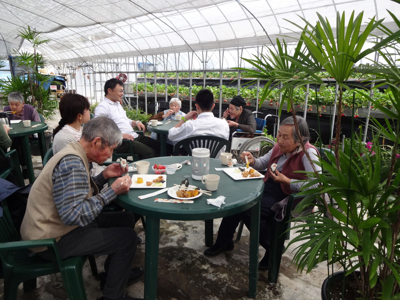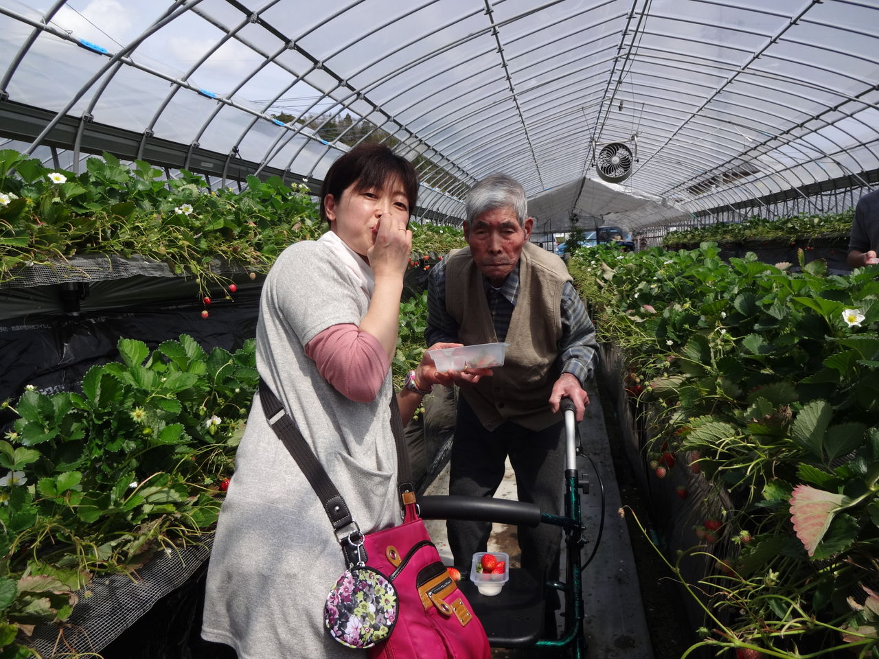真っ赤ないちごを頬張って 2014.04.02 10:41 今日は❛いちご狩り❜に出掛けました 皆さんいい笑顔でいちごを頬張っているでしょ?いちご狩りを楽しんだ後は、ハウスの一画をお借りして、作って行ったお弁当をおいしくいただきました あきらいちご園さん、お世話になりました