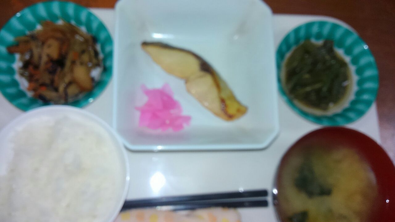 本日のメニュー 2017.01.14 11:05 本日のメニューです(1月14日) 昼食 主食 ごはん 味噌汁 主菜 シルバー幽庵焼き 副菜 五目きんぴら 添え物 いんげんのゴマよごし夕食主食 ドライカレー 味噌汁副菜 おさつサラダ添え物 ヨーグルト