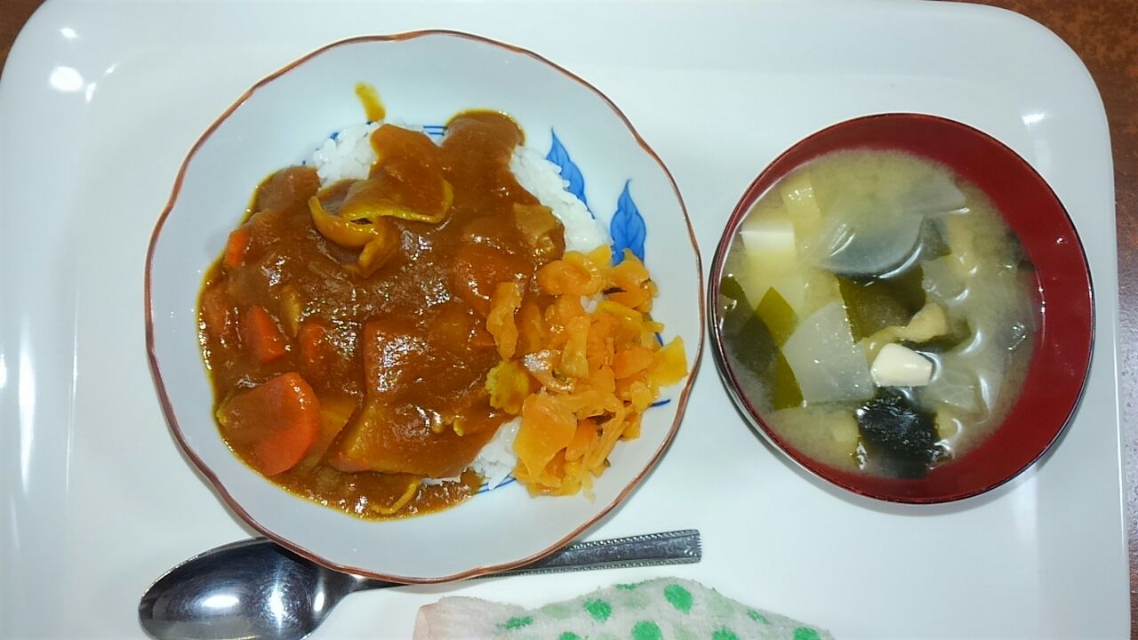 本日のメニュー 2017.02.15 11:17 本日のメニューです(2月15日) 昼食 主食 ポークカレーライス 味噌汁 添え物 福神漬け夕食主食 ごはん 味噌汁主菜 照り焼きスライスチキン副菜 パスタサラダ 玉ねぎとわかめの甘酢和え添え物 五目豆