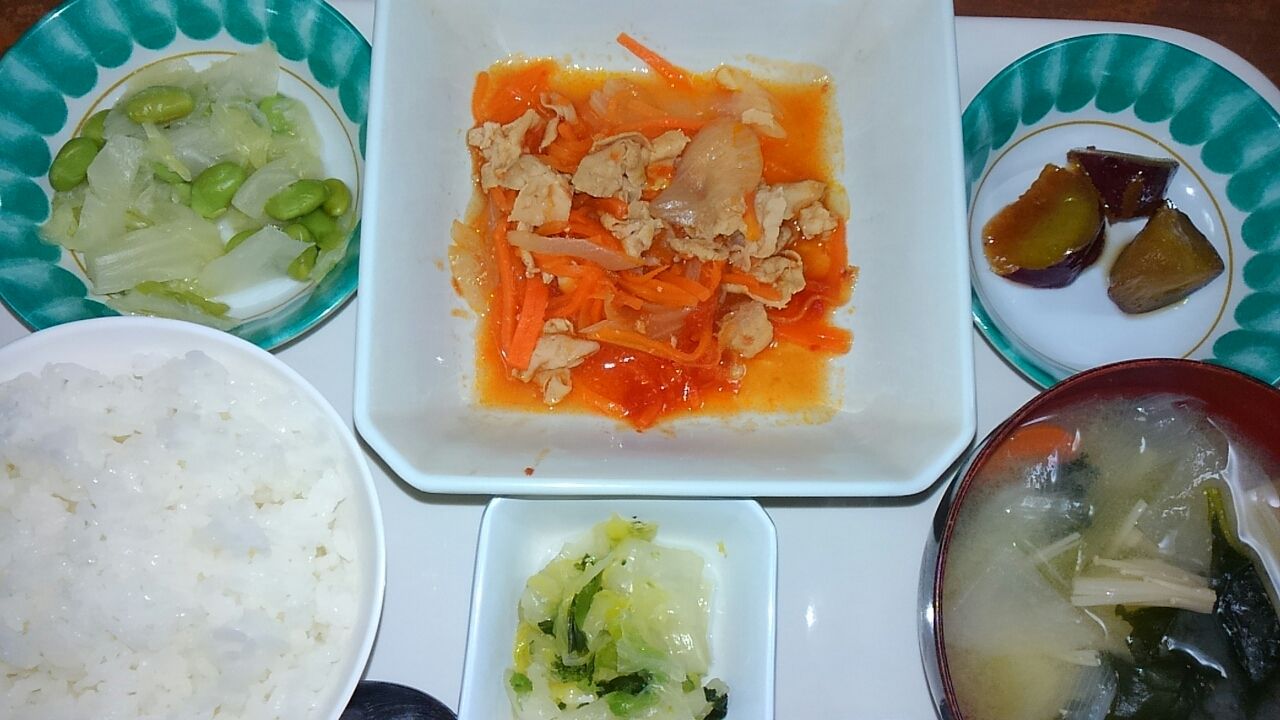 本日のメニュー 2017.02.18 11:04 本日のメニューです(2月18日) 昼食 主食 ごはん 味噌汁 主菜 ポークチャップ 副菜 大学芋 キャベツと枝豆のソテー風 添え物 白菜と菜の花の浅漬け夕食主食 ごはん 味噌汁主菜 六種のおでん副菜 焼きビーフン オクラと若芽のワサビ和え添え物 きざみたくあん